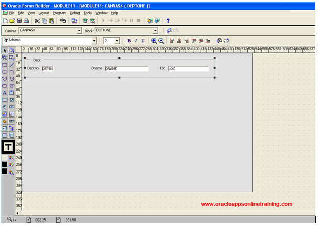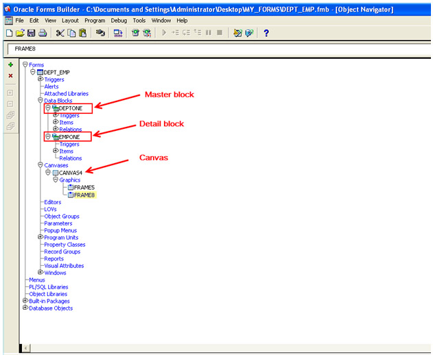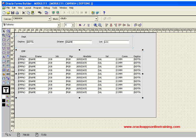 Detail Item -- Deptno Maser Item Deptno Next Data block Name EMPONE Next Create data block and then call layout wizard Finish