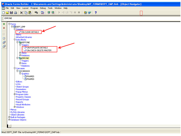 When we establish Master-detail relationship between two blocks, the following triggers are created.