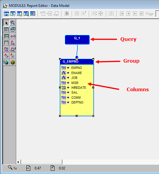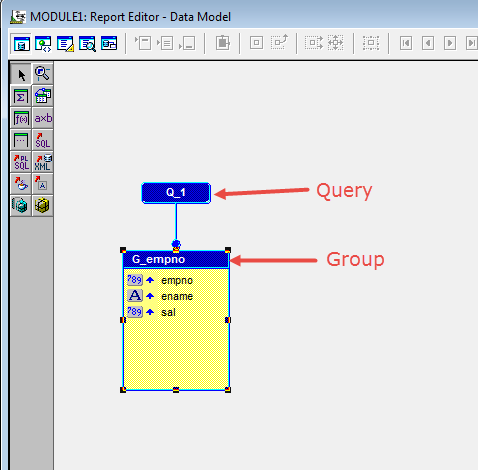 For the repeating frame, we need to provide source as group ( G_empno ).