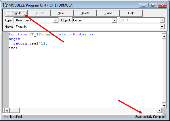 Close MODULE1: Program Unit - CF_1FORMULA window.