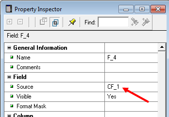 For the last field ( F_4 ), provide the source as CF_1, as it needs to get the data from the formula column.